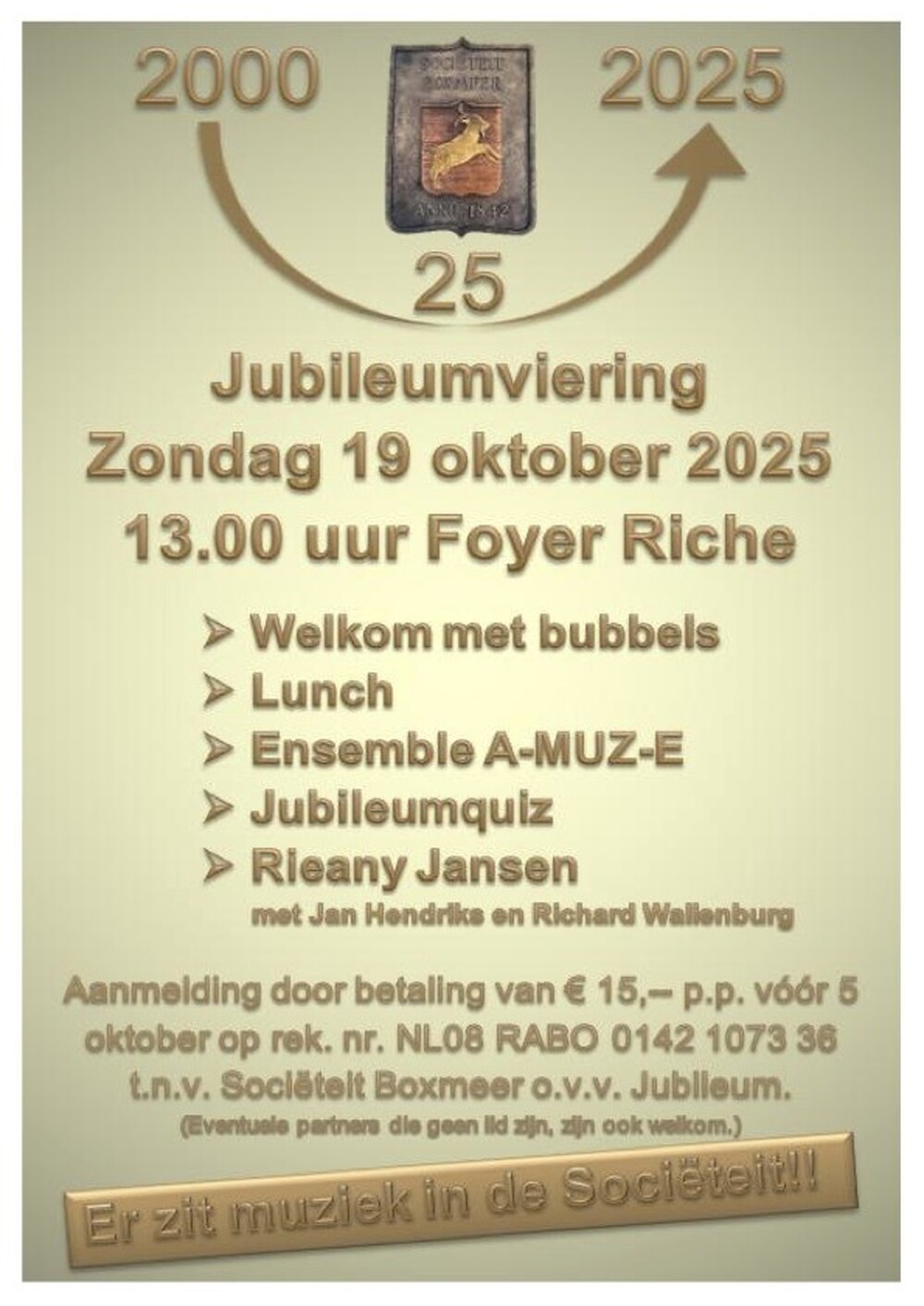 Op zondag 19 oktober viert de heropgerichte Sociëteit het 25-jarig bestaan.